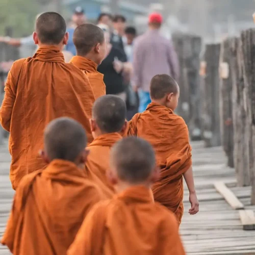 Toca madrugar para un vuelo matutino de Yangon a Mandalay. A la llegada, tour privado por la legendaria Mandalay, última capital de la Birmania Real. Nos acercaremos a ver los talleres de artesanos locales donde elaboran el pan de oro, tapicerías, tallado en madera y tallado en mármol. Por la tarde veremos el hermoso monasterio de teca Golden Palace. Seguiremos hasta la Pagoda Kuthodaw, conocida como «el libro más grande del mundo”. Antes del atardecer, visitaremos un puente de teca de 200 años de antigüedad. Comidas: Desayuno / Almuerzo en un restaurante local.